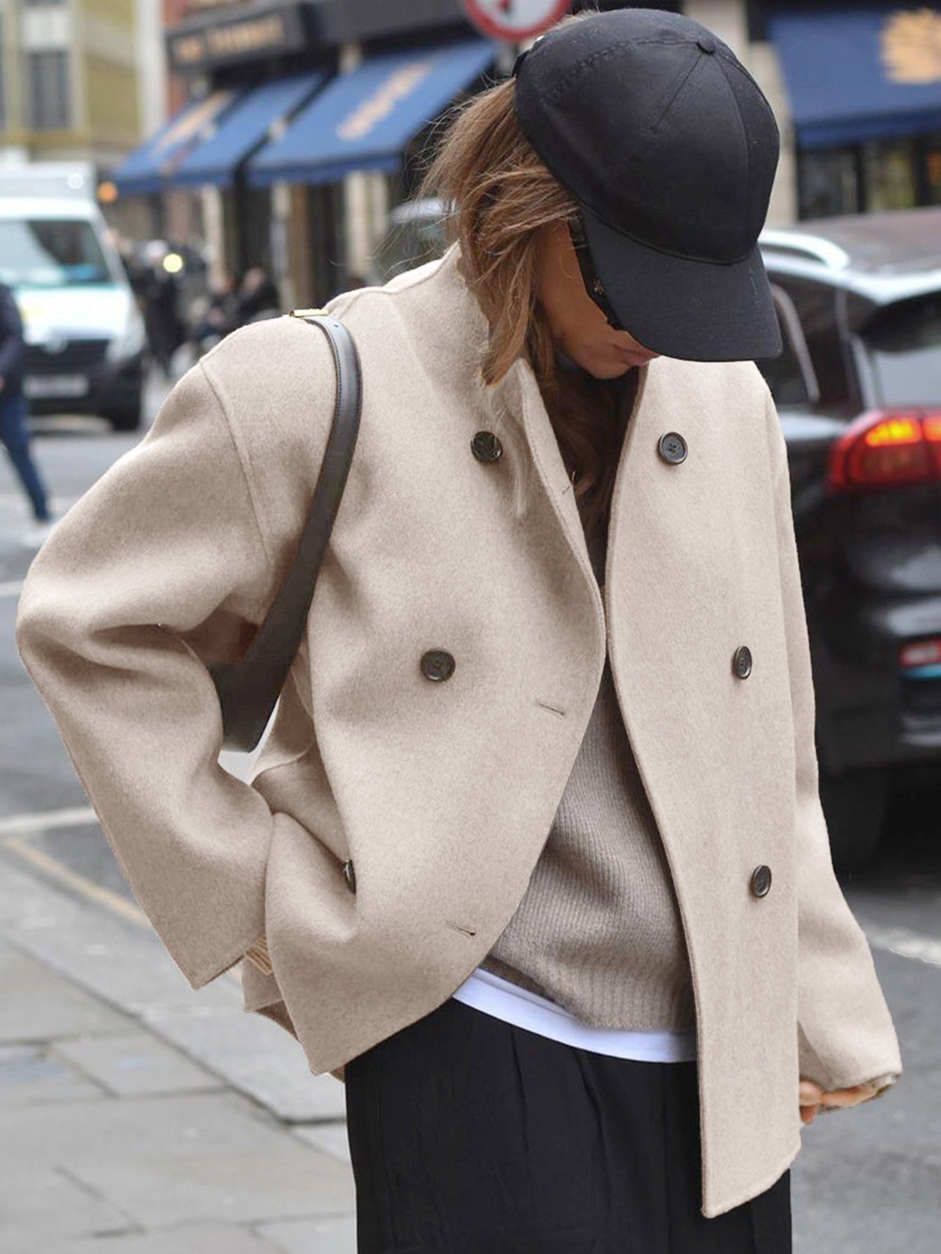 Gold 3D Sequin Embroidered Wool Blend Pocket Coat