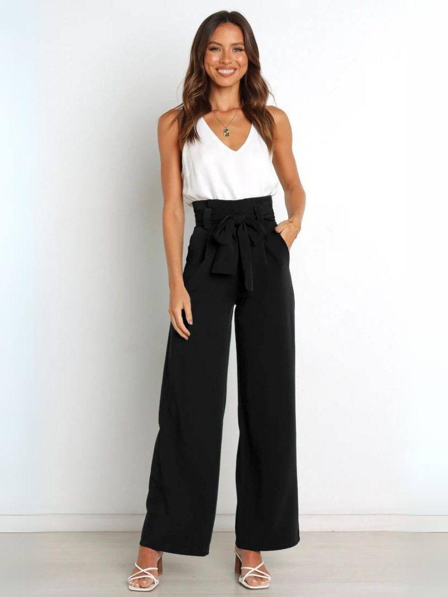 Striped Pockets Wide Leg Pants Without Belt